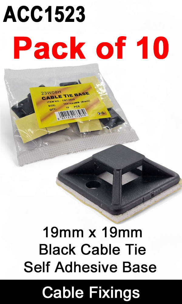 10x White Cable Tie Adhesive Base + 250mm Cable Tie | ACC1524+ACC1332