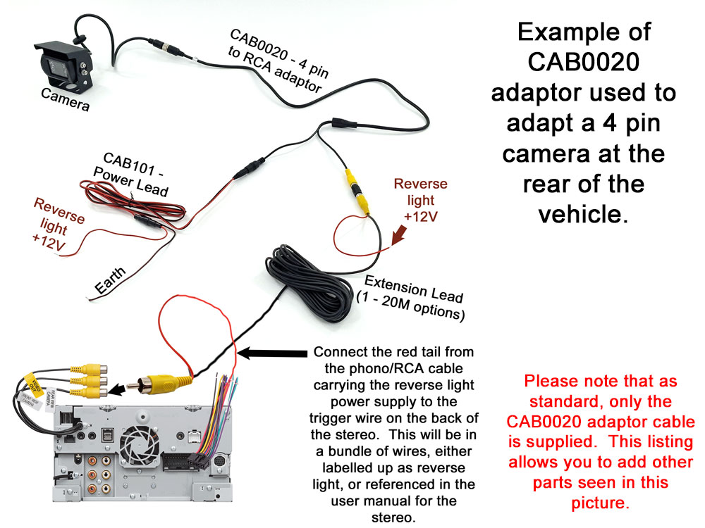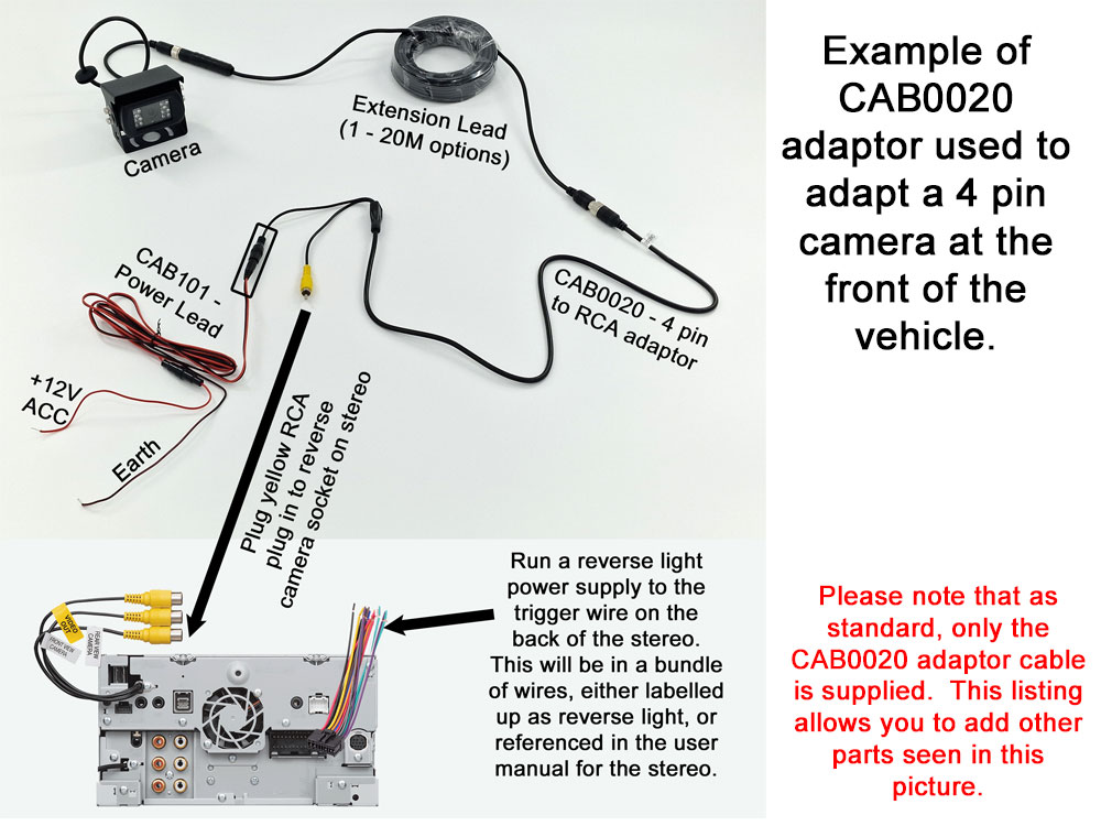 - This adaptor will convert a 4 pin aviation connector reversing camera, or cable to RCA Phono plug