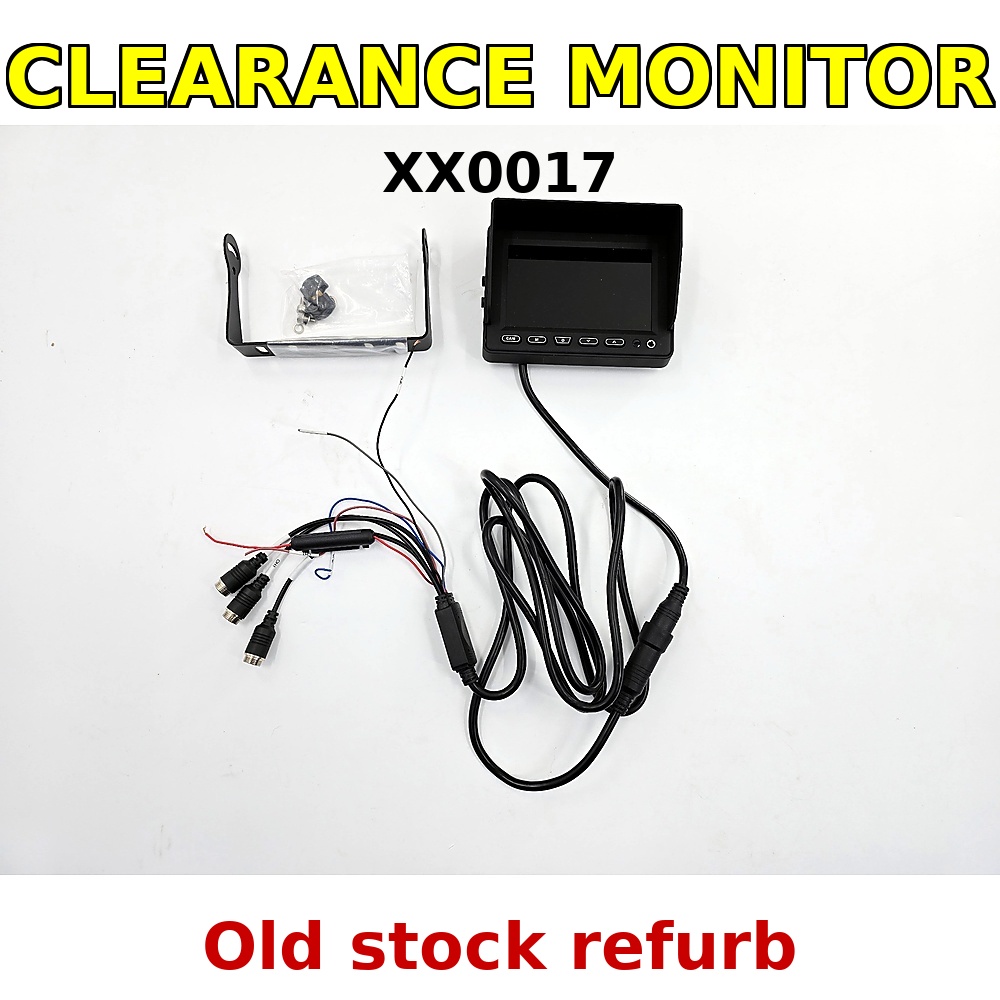 This black 5-inch dash-mounted reversing monitor is a reliable choice for a clearance bargain. It supports standard CVBS video input via 4-pin aviation connectors and is supplied with a sunhood and mounting bracket.