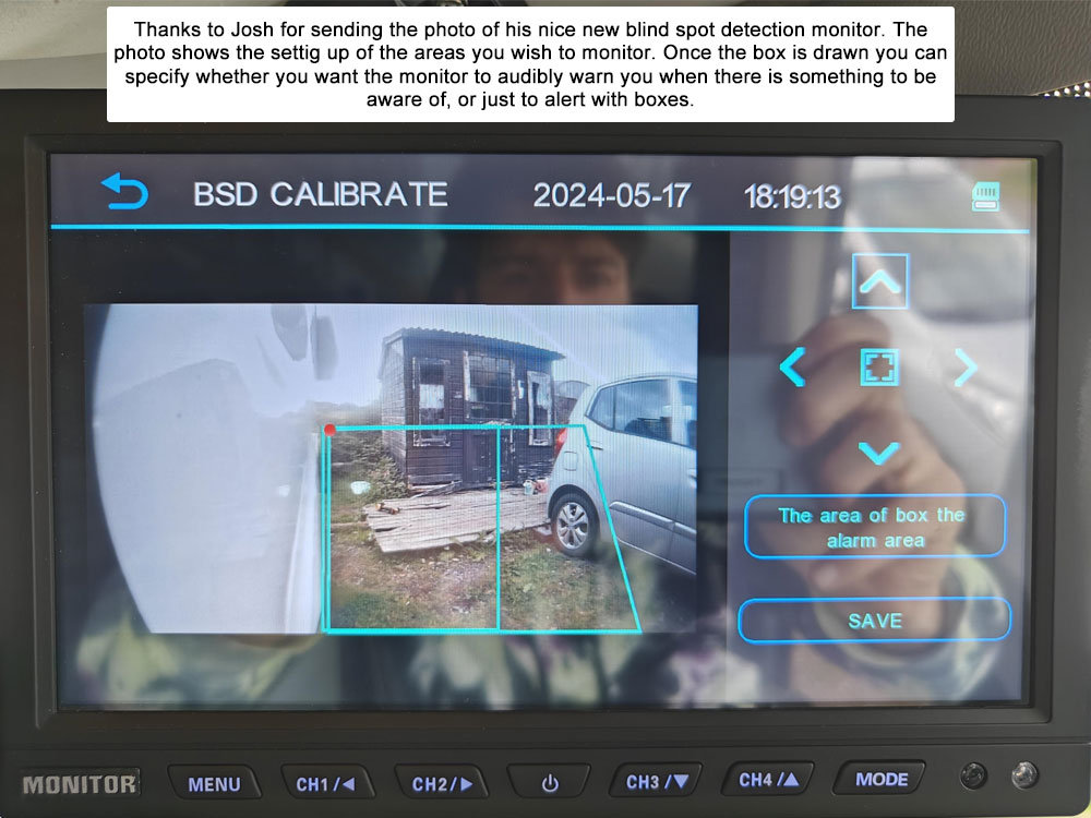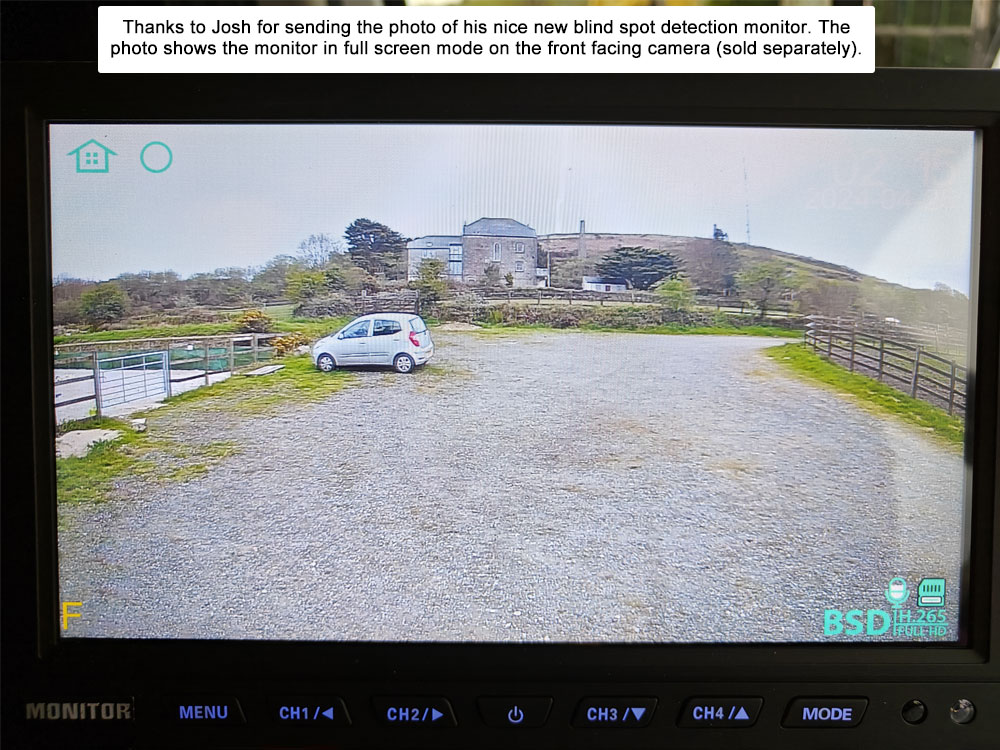 Blind Spot Detection : Supports 3 channels (left, right, back)