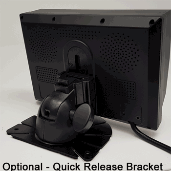 We have an optional quick release bracket available for this monitor, you may select it in the options above.  This will lock in to the back of the monitor using it’s mounting channel.  The piece will slide down and click on to the quick release bracket which stays on the dashboard.  When you wish to remove the monitor (for theft prevention) you can disconnect the monitor cable around a foot back from the monitor, then simply pull the trigger on the bracket which unlocks the monitor and slide upwards.  You can then remove the monitor from the vehicle or hide it.