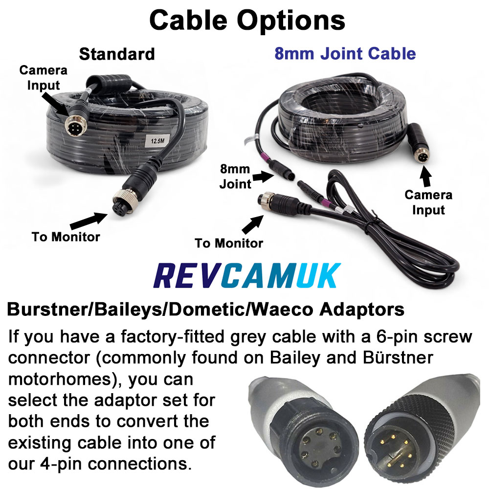 We stock a large range of cable lengths to suit any vehicle, whether you have a car, van, motorhome, tractor, coach, bus, or HGV. We also stock adaptors for the Dometic/Waeco 6 pin screw locking cable commonly found pre-fitted on Burstner and Baileys motorhomes. We can also provide a slimline 8mm disconnect point to our 10M/12.5M/15M cable lengths to help you run the cable through tight gaps without having to drill a large hole for the main connector.