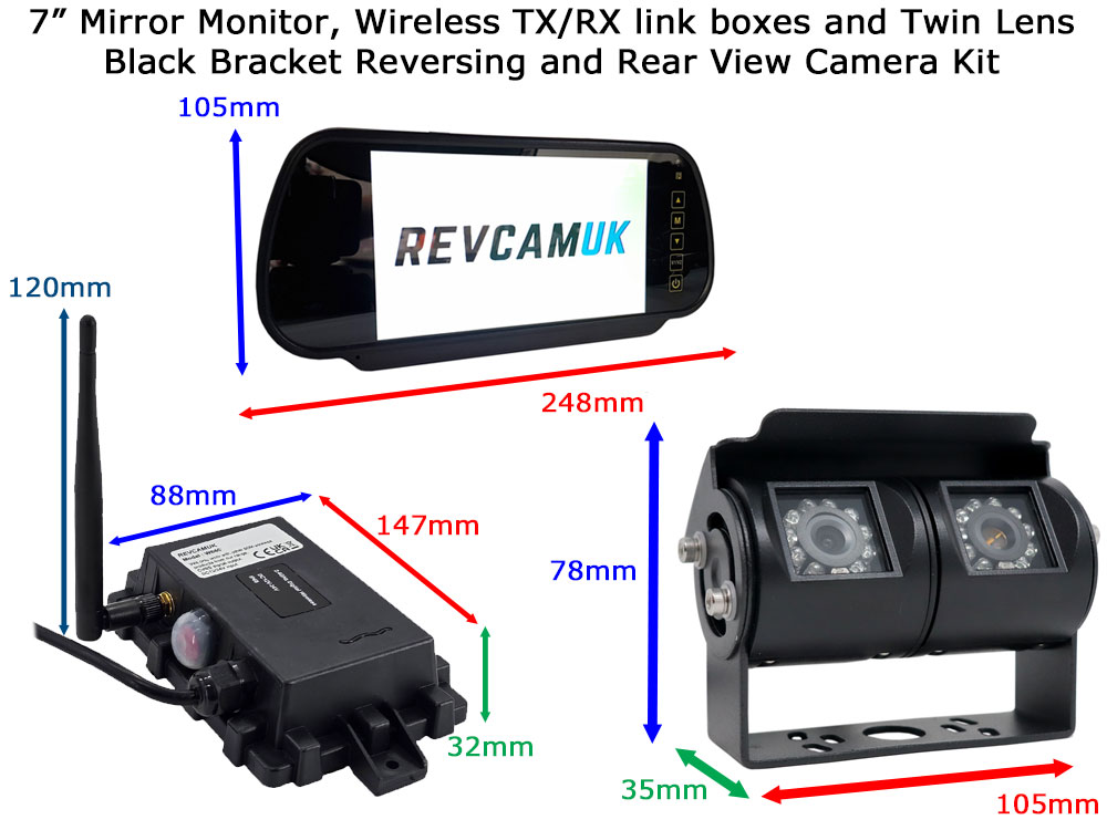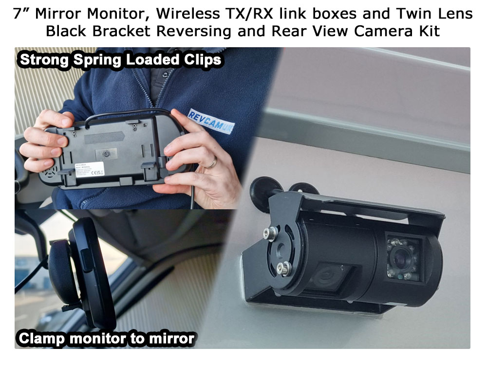 Sony CCD Black Bracket Wireless Twin Lens Reversing and Rear View Camera with 7″ mirror monitor | DW33B