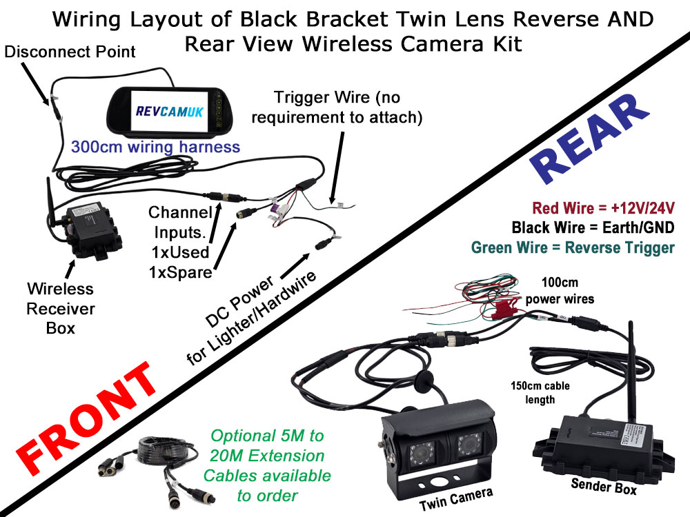 Instructions Dual Lens Wireless TX RX Sender Receiver Reversing & Rear View Camera Kit