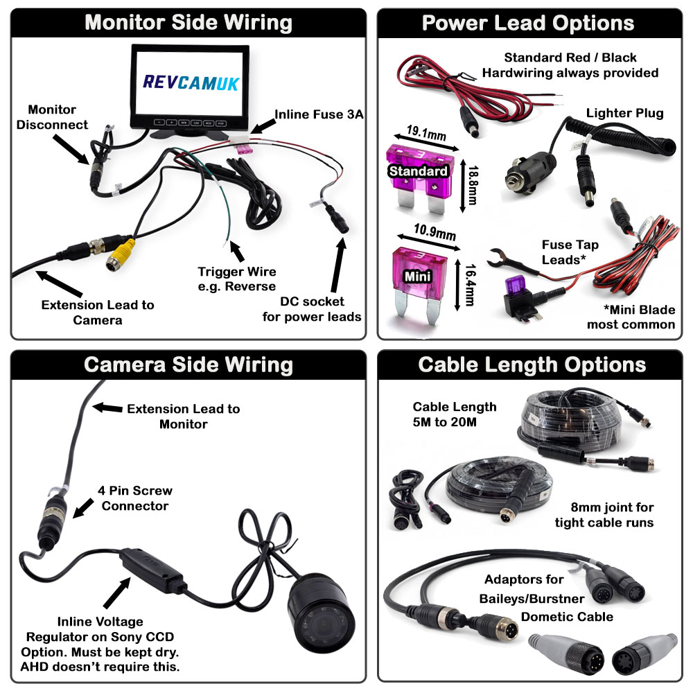 Please kindly note that on the Sony CCD option there is an inline voltage regulator on the cable that should be kept dry, if you aren’t able to get this somewhere protected, please select the AHD upgrade version.