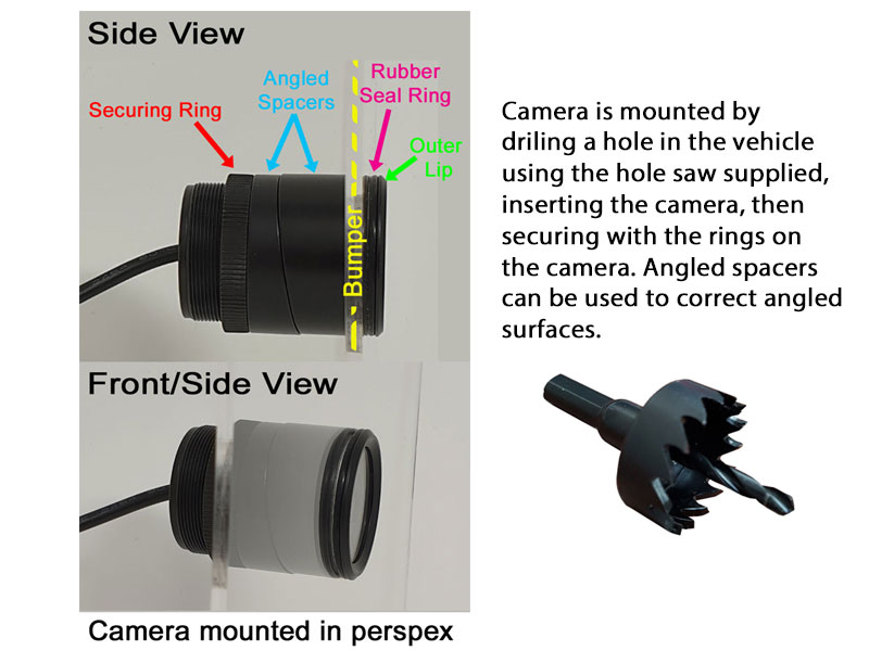 Flush fitting Bumper Reverse Camera fitted with a premium Hi-Res 600TVL 1/3″ Sony CCD image sensor – CAM039
