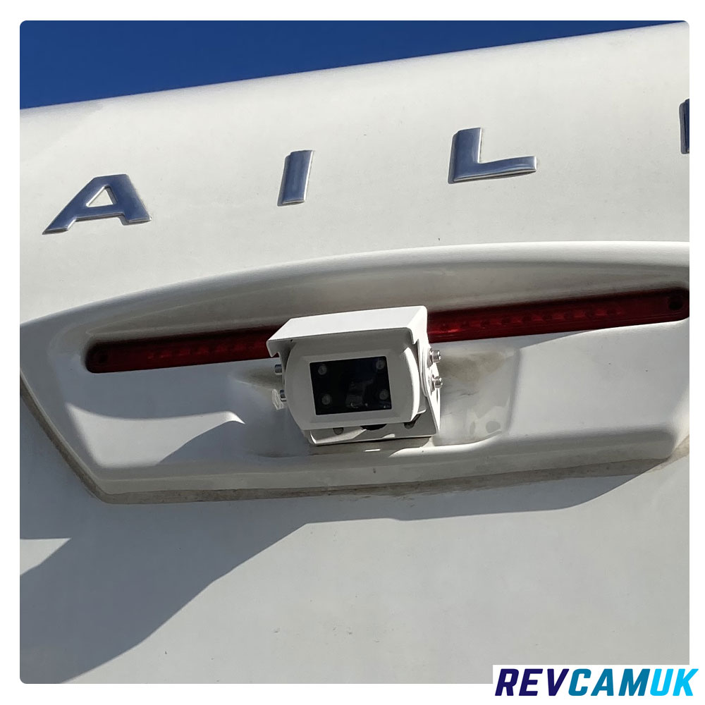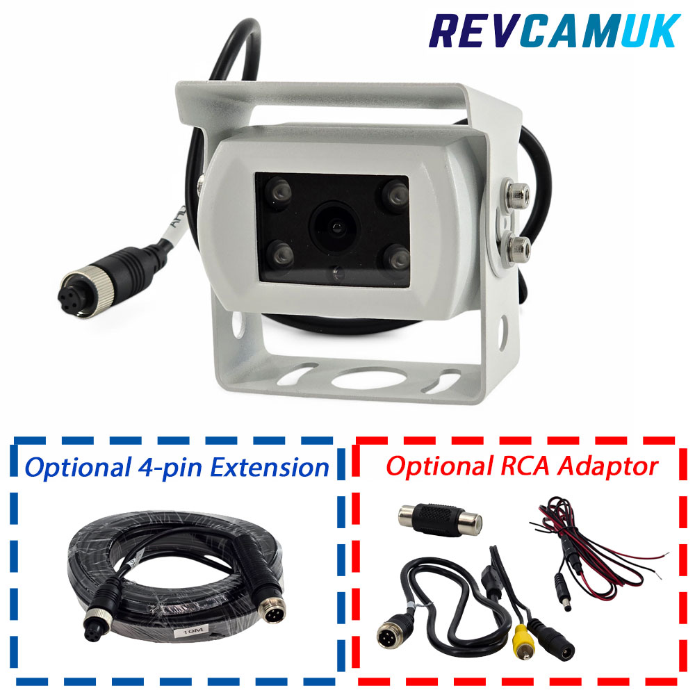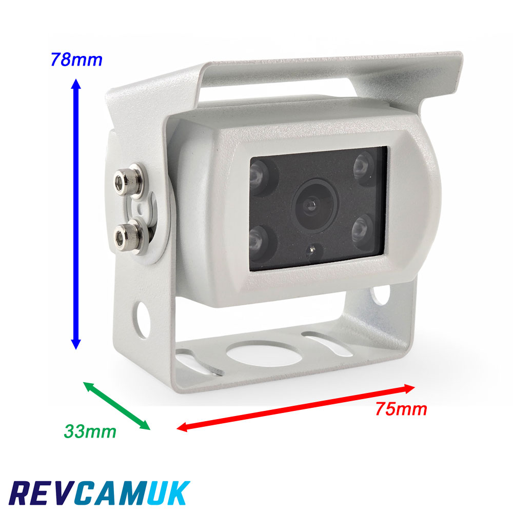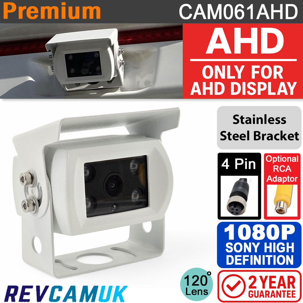 This is our CAM061AHD, a white bracket reversing camera that uses the Sony IMX307 1080P AHD image sensor to provide a sharp, high-definition image with excellent colour reproduction. It is ideal for lighter-coloured vans, motorhomes and commercial vehicles where a white camera blends in better with the bodywork. The camera is mounted on a stainless steel bracket with a matt white painted finish and can be angled precisely to give a clear view behind the vehicle. Infrared LEDs provide night vision so you can still see what is behind you in low-light conditions. It uses a standard 4-pin connector and can be ordered with extension cables and RCA adaptor sets at discounted rates through this listing. The camera comes with a two-year guarantee and forms part of our well-regarded Reversing Cameras UK range.
