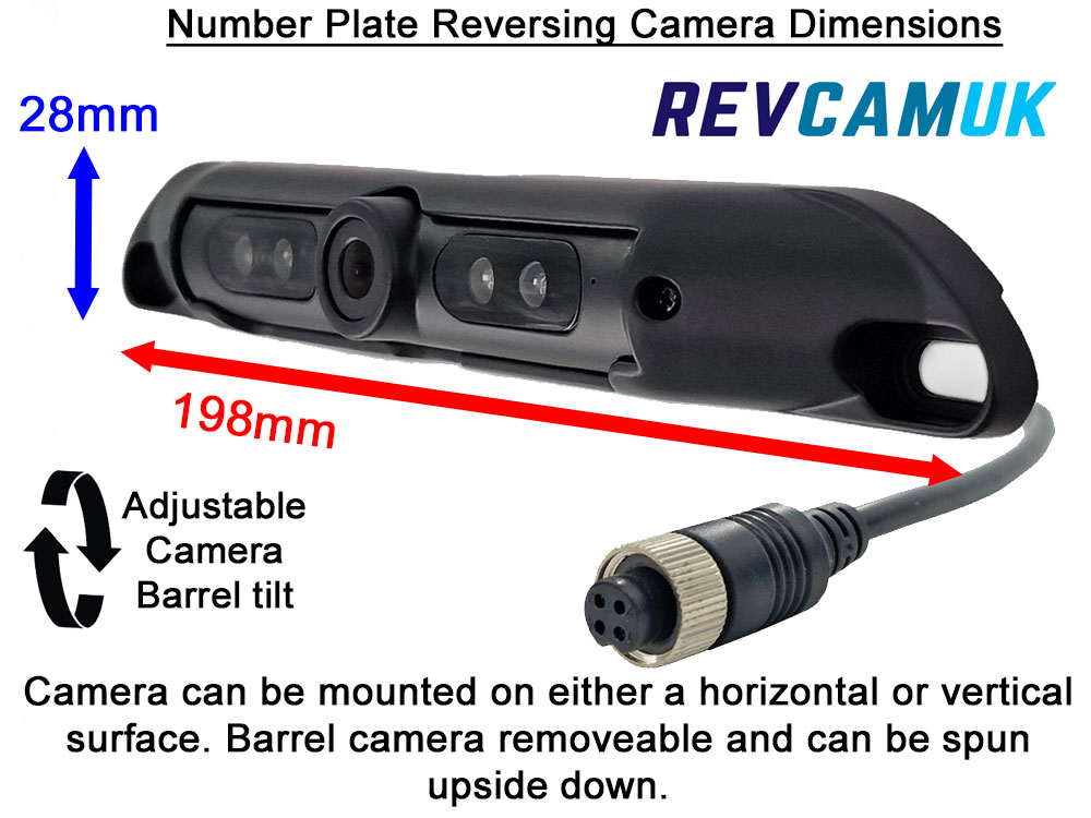 Flexible Mounting Location – Designed so that it can either be mounted on a vertical surface e.g. rear wall, or a horizontal surface e.g. underneath number plate light trim/cross bar. The barrel camera inside the camera housing can be removed and spun/upside down to ensure the camera image is always the correct way up.