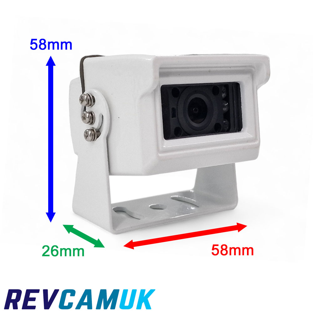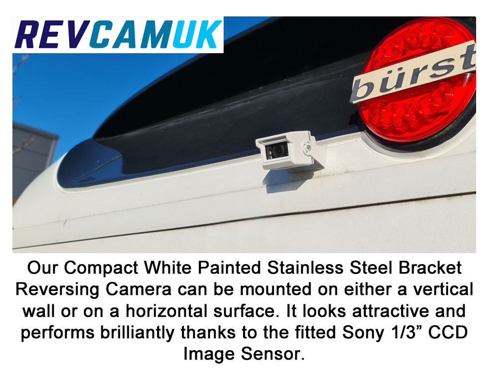 • Compact white bracket reversing camera with stainless steel mount