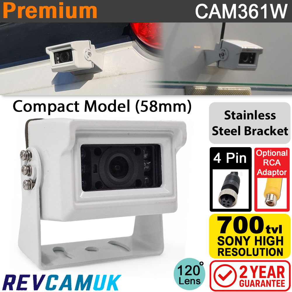 • Compact white stainless steel bracket reversing camera (CAM361W)