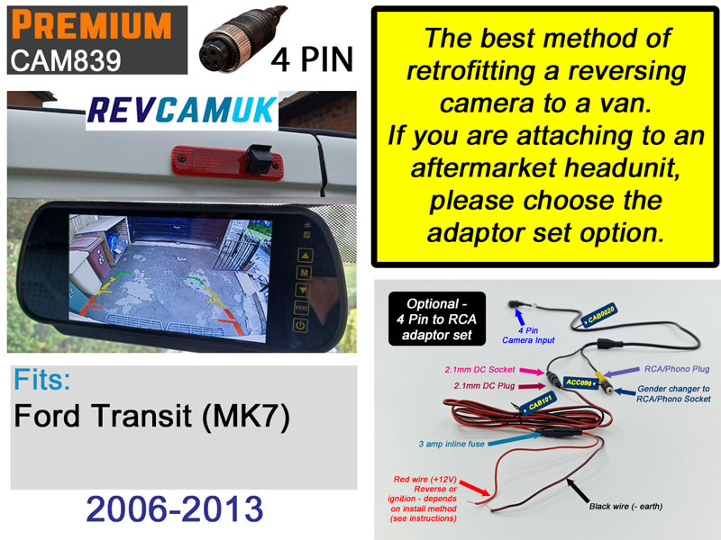 If you would like a complete reversing camera kit for your Ford Transit Mk7, including a display and cabling, please see the options below. All kits include this camera, suitable cables and our 2-year guarantee.