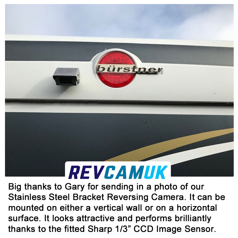 This listing is for our polished stainless steel bracket reversing camera, a classic and widely used camera style that remains especially popular on motorhomes, caravans, vans, HGVs and commercial vehicles. Bracket-mounted cameras such as this are often chosen for their simple installation, durability and dependable rear parking performance.