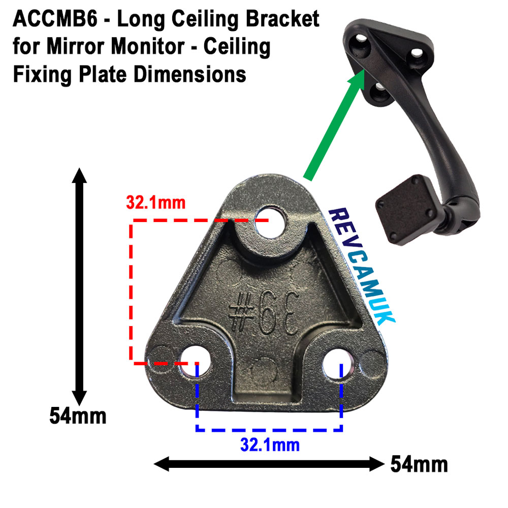Universal Ceiling-Mount Design – The ACCMB6 allows you to mount your mirror monitor directly to the interior ceiling of the vehicle, giving maximum flexibility in positioning where dashboard or windscreen mounts are not suitable.