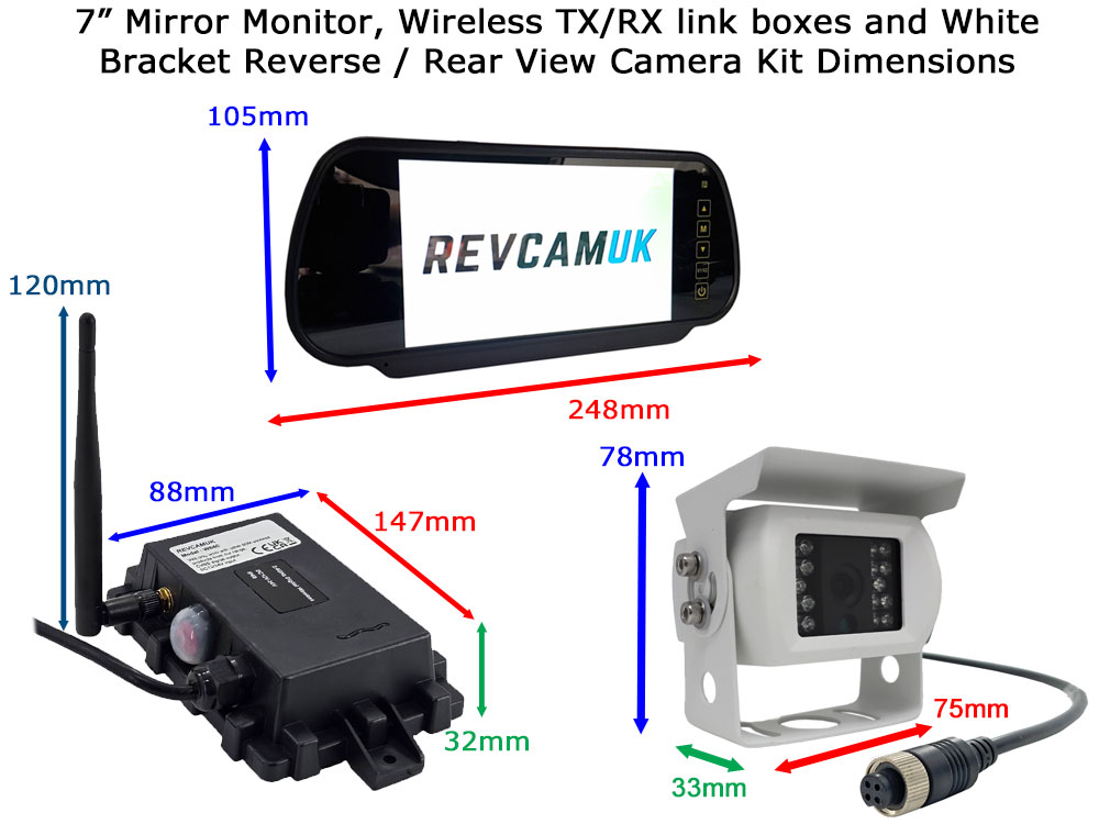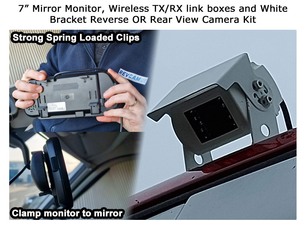 Sony CCD White Bracket Wireless Reverse / Rear View Camera with 7″ mirror monitor | DW31W