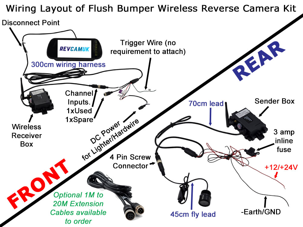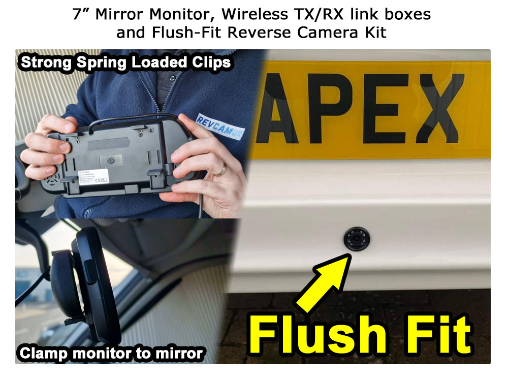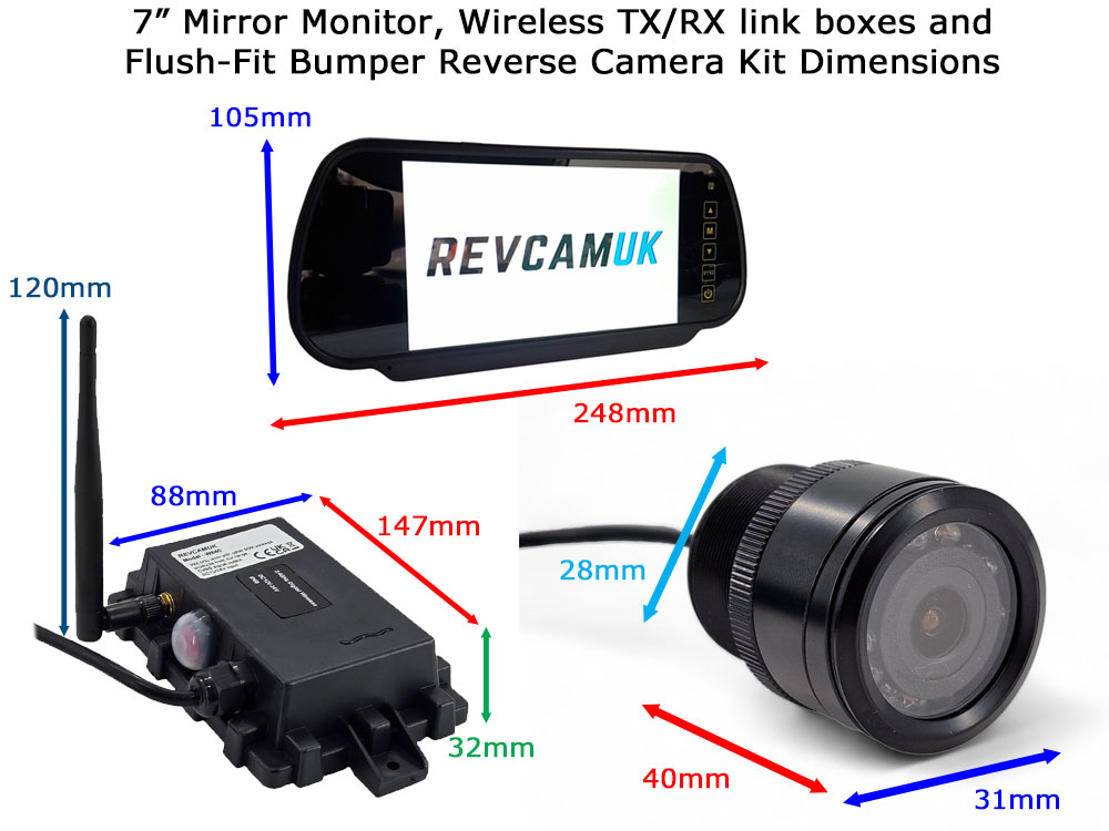 About the wireless reversing camera kit with 7 inch mirror monitor and flush fitting bumper camera