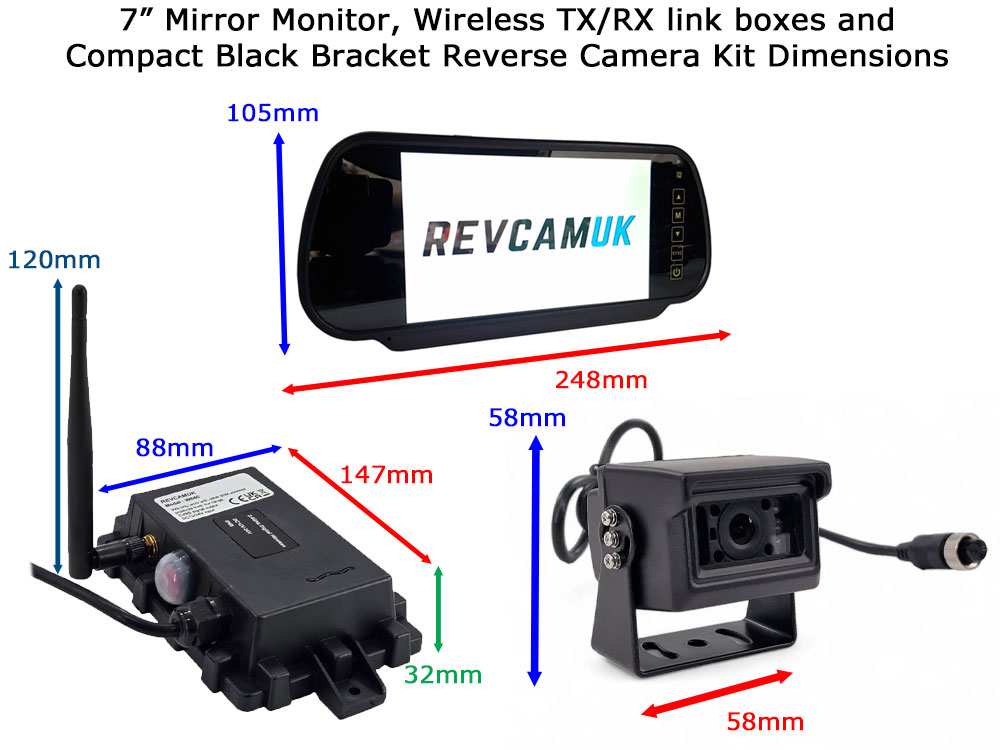 About the wireless reversing camera kit with 7 inch mirror monitor and black compact bracket camera