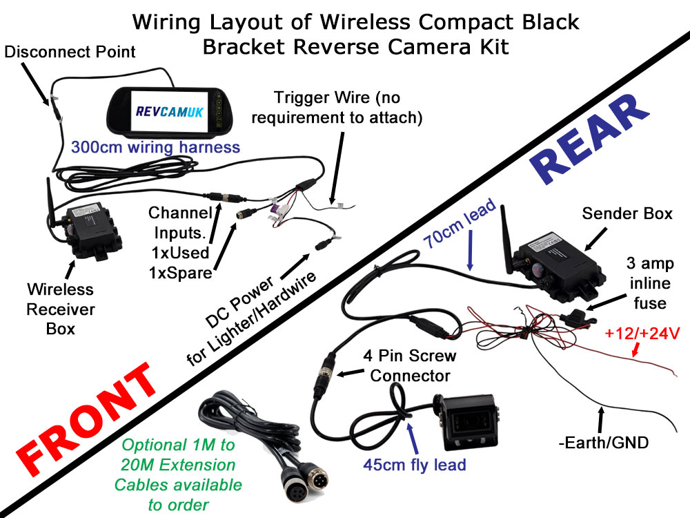If you have a modern car, van, or motorhome, then we recommend using a cabled reversing camera kit instead. This is because these modern vehicles don’t often have non-canbus ignition switched power supplies to tap off. On caravans/trailers it is not an issue to tap off things like side lights to power the sender/camera as the car doesn’t run canbus checks on trailer lights.