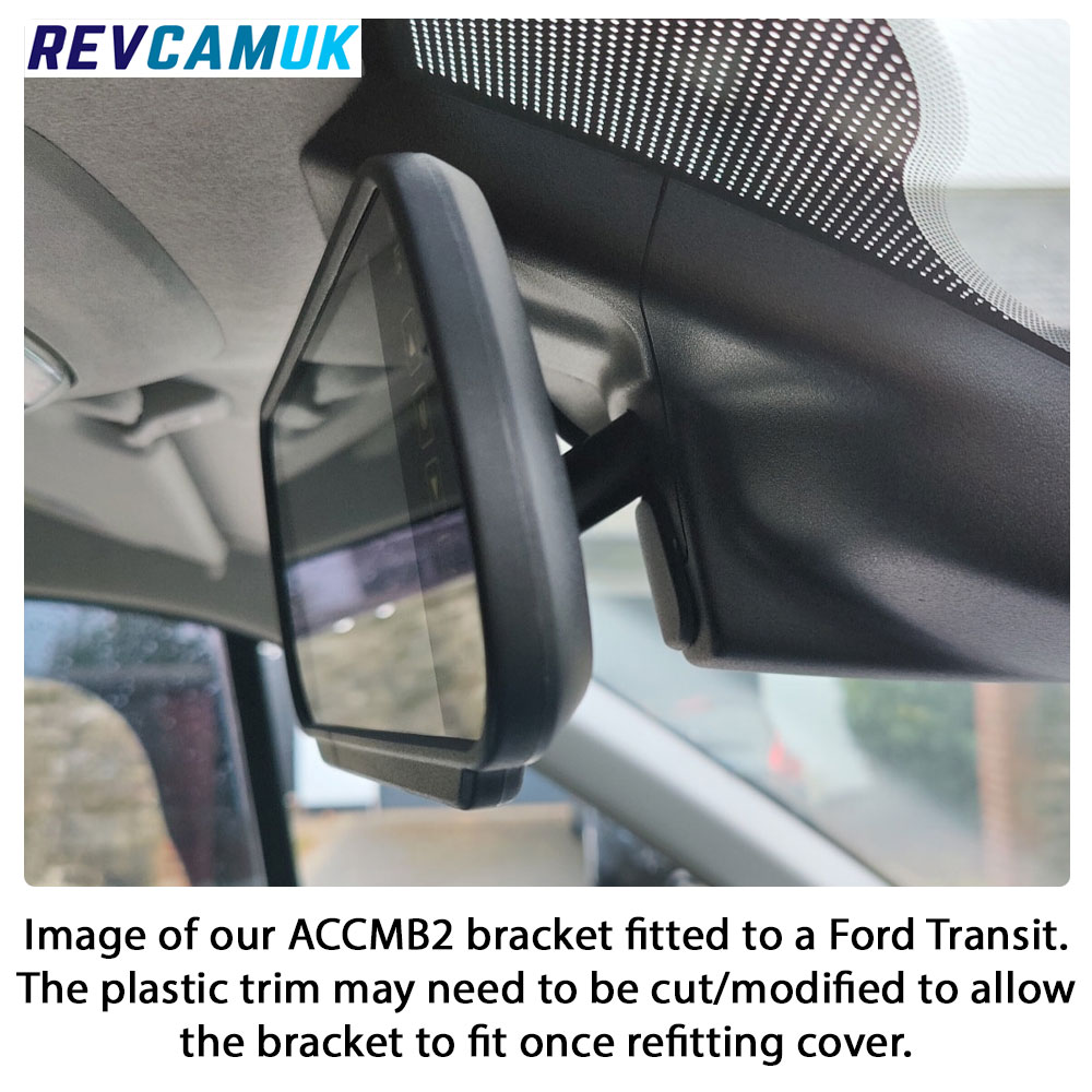 This universal / Ford swan-neck mirror monitor bracket is designed to fit the most commonly used windscreen mounting plate found on many Ford vehicles, including popular models such as the Ford Transit, Transit Custom and Transit Connect. It slides down on to the factory metal button on the glass and provides a secure mounting point for bracket-style mirror monitors, making it ideal when you want a neat, factory-style installation. Screws are included to fix the bracket to compatible mirror monitors, but it is not suitable for clip-over mirror monitors as they do not have the required rear mounting plate.