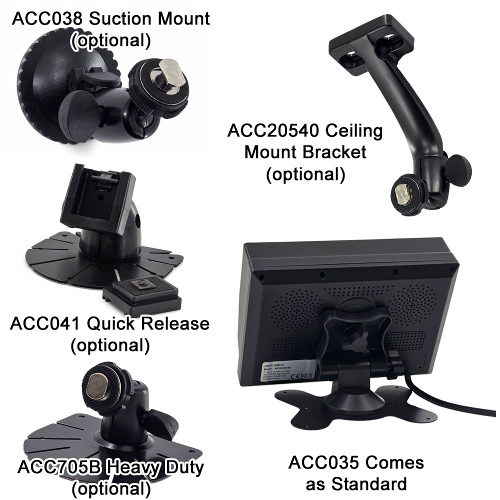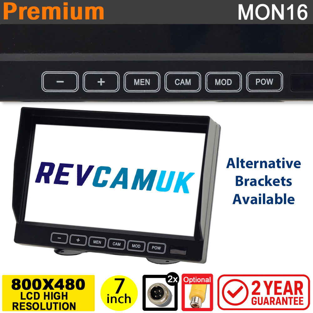 - 7-inch reversing camera monitor (MON16) with fly lead to 8-pin connector