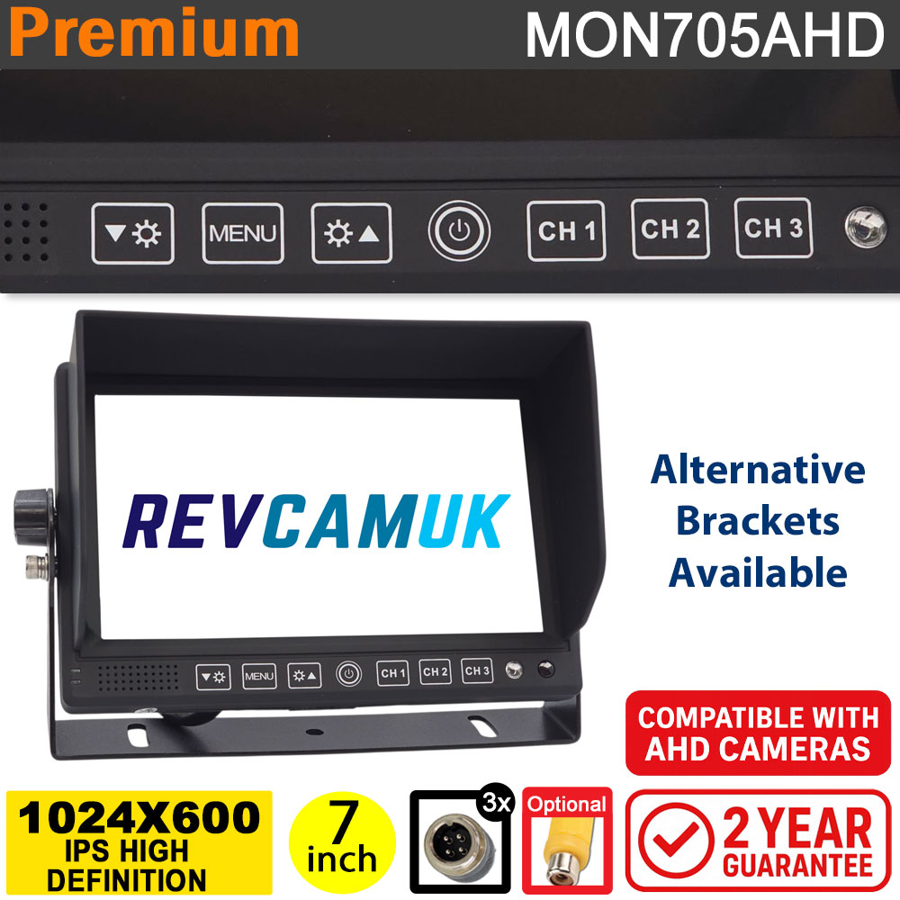 7 inch monitor display for reversing cameras – 3x inputs (720P/960P/1080P/CVBS)