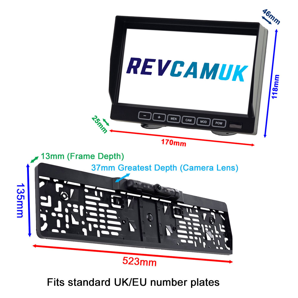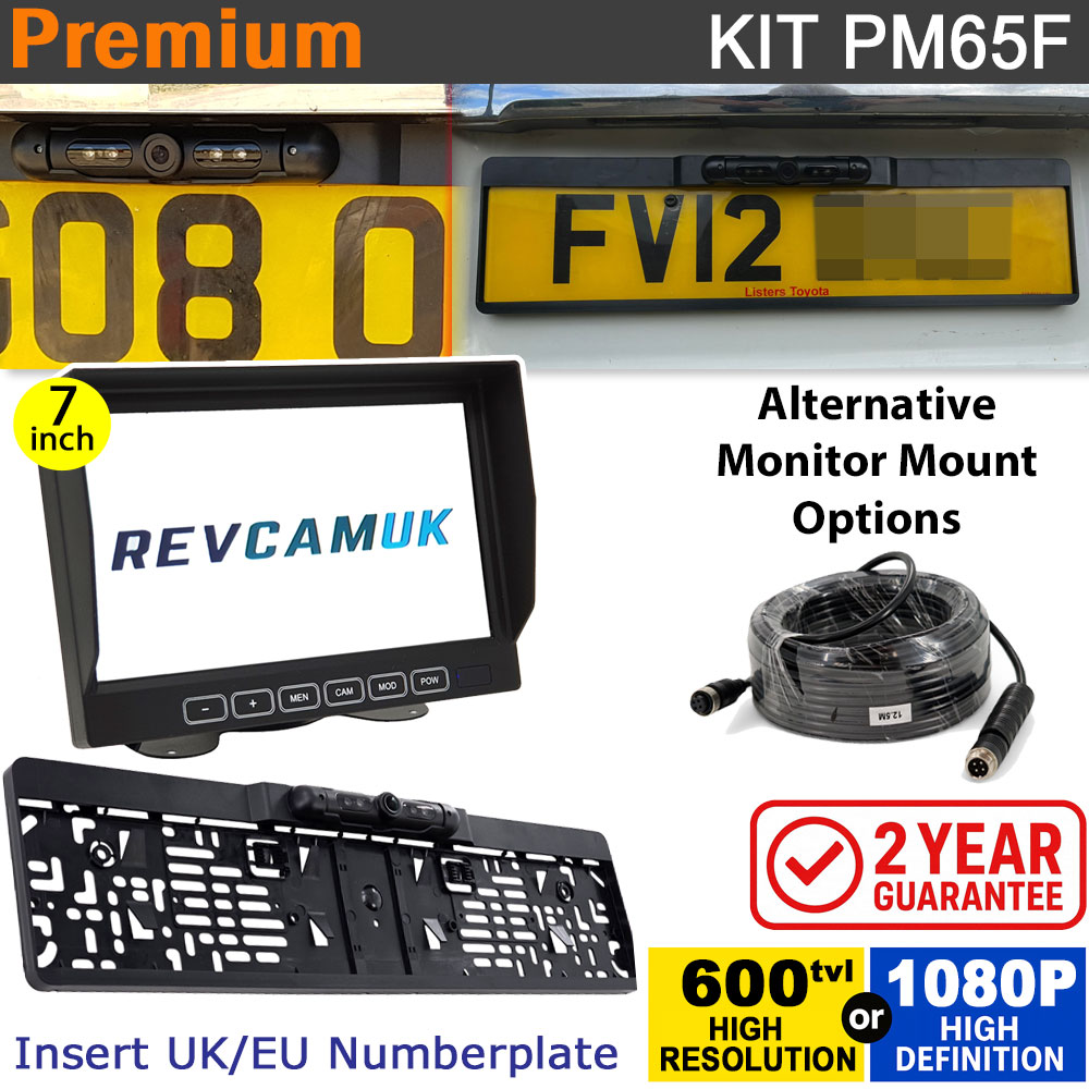 PM65F Numberplate Frame Reversing Camera Kit with 7-inch Dash Monitor