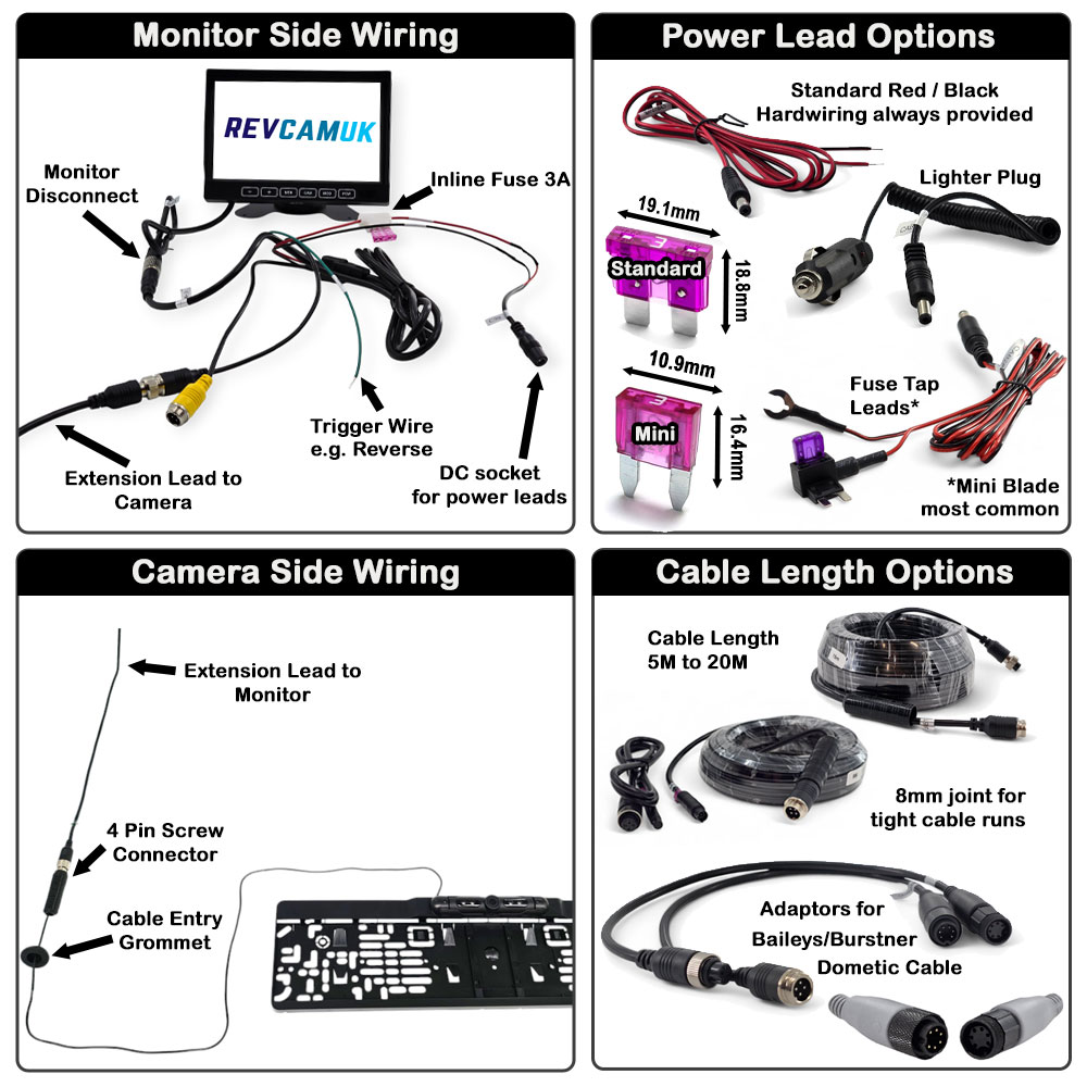 - Main harness and 4-pin camera lead (12.5 m standard length)