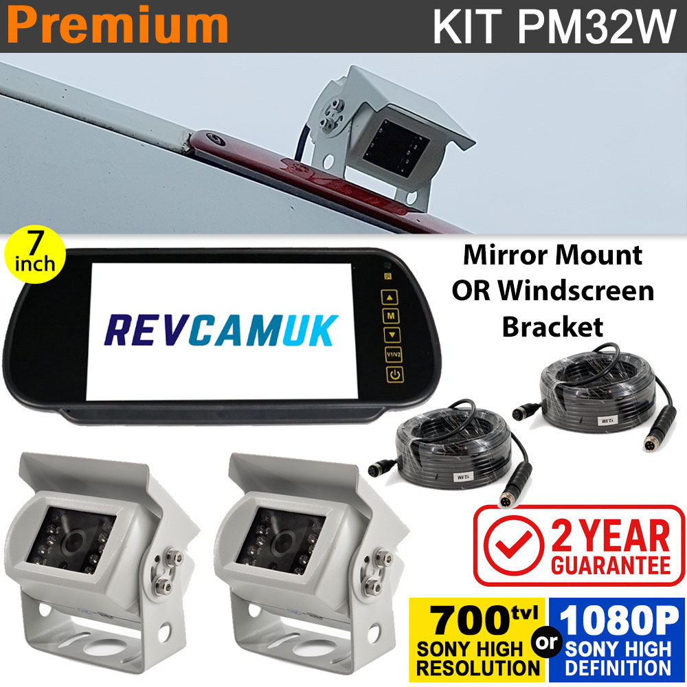 PM32W – 7 inch mirror monitor and 2x white bracket cameras kit