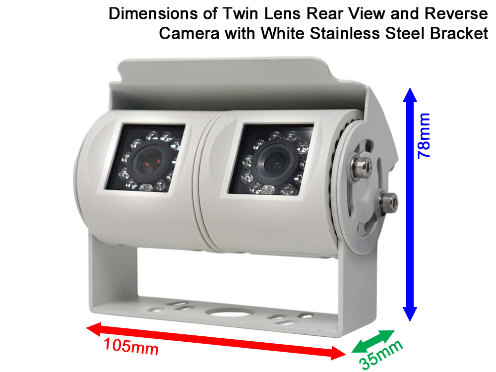White Twin Lens Bracket Reversing & Rear View Camera Kit + Mirror Monitor for Motorhomes