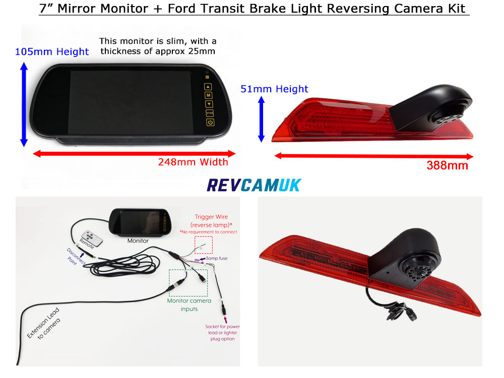 About the Ford Transit Mk8/Mk9 2014+ brake light reversing camera kit with 7″ mirror monitor