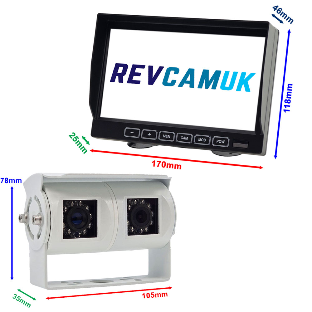 White Twin-Lens Bracket Motorhome Reversing & Driving Camera Kit with 7-inch Dash Monitor