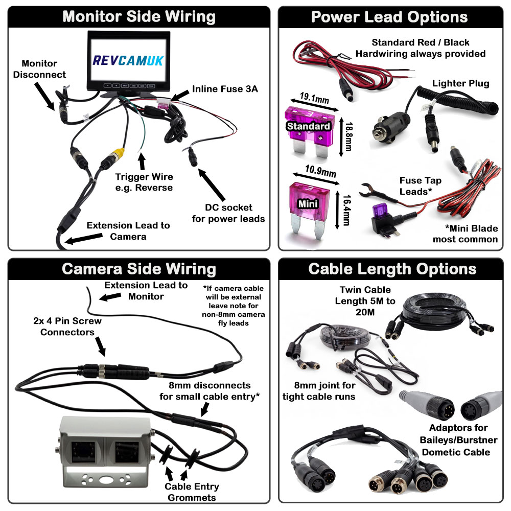 Wiring & water ingress note: Features an 8 mm disconnect joint option to allow routing through smaller entry holes. This joint is not waterproof and must be kept inside the vehicle. If you need to route the cable externally (for example along a motorhome roof), request the version without the 8 mm joint in your customer notes.