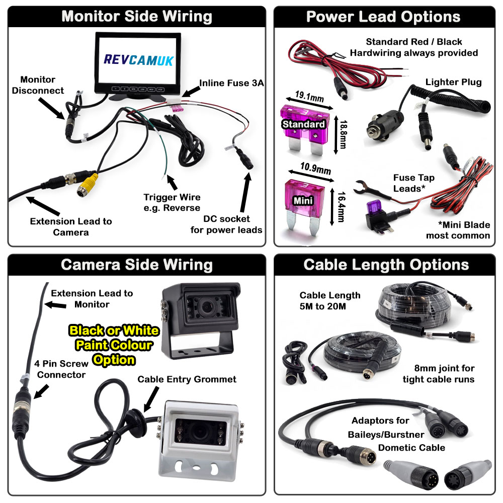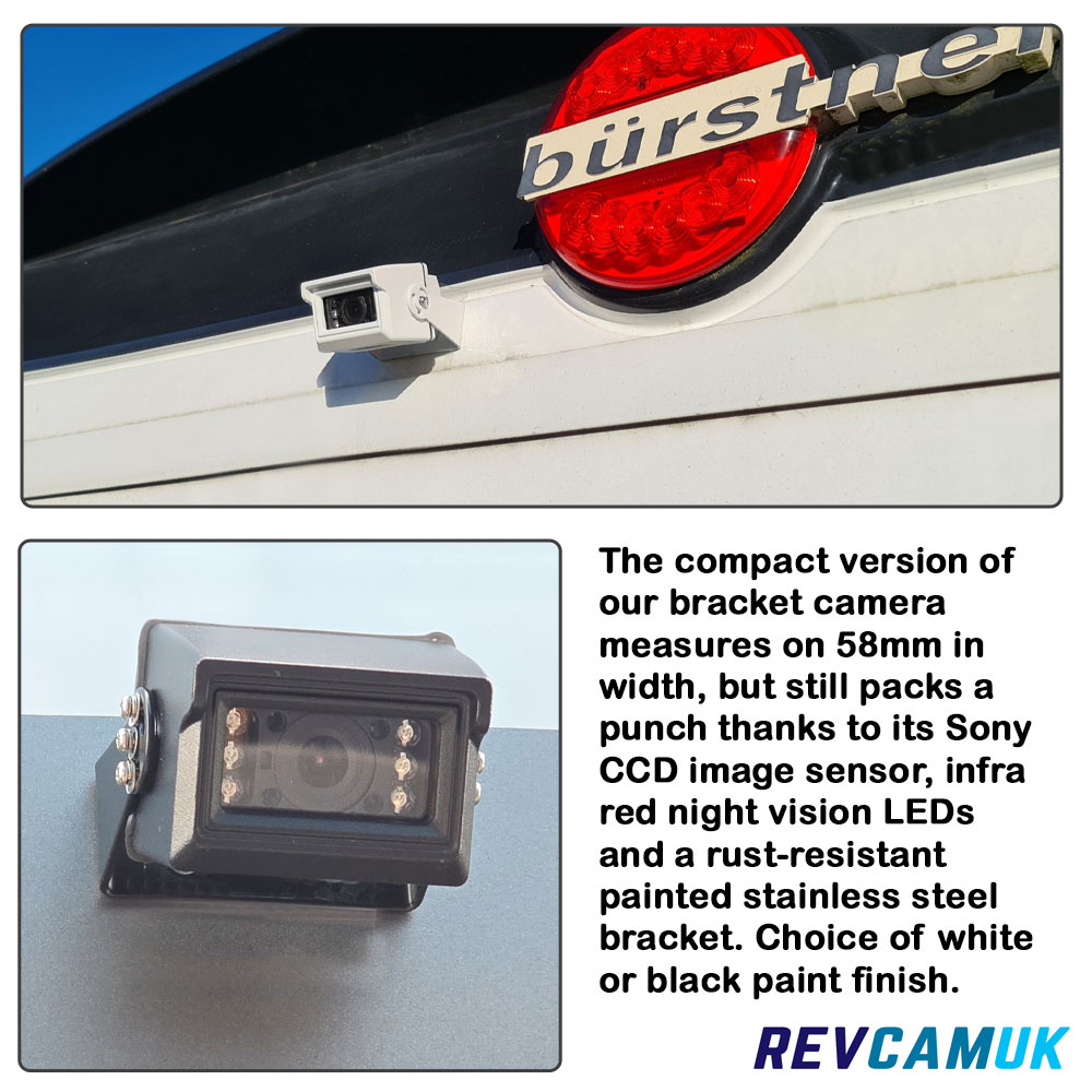 - Compact bracket reversing camera (black or white option)