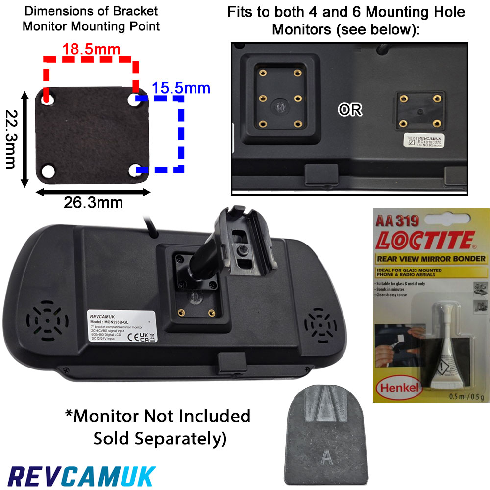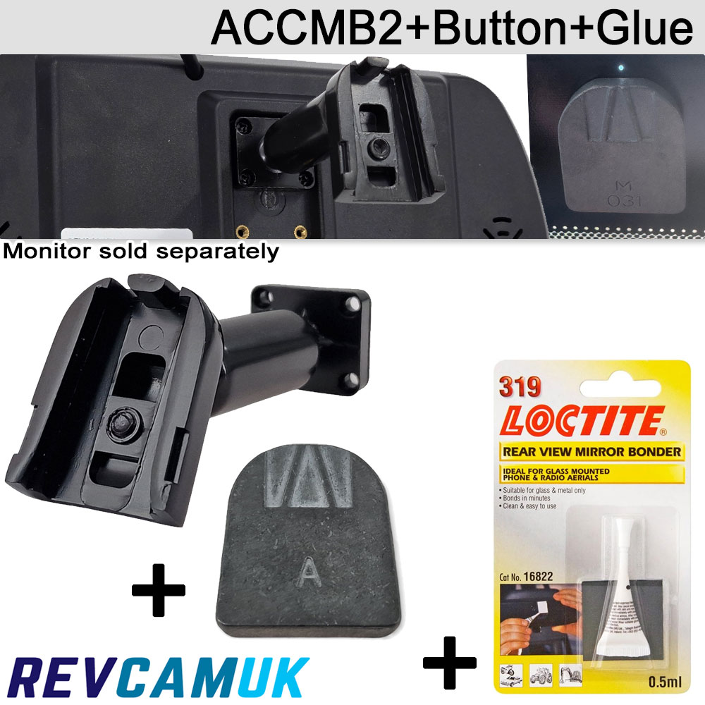 ACCMB2 + Button + Loctite 319 – Universal Glue-On Windscreen Mirror Monitor Bracket Kit