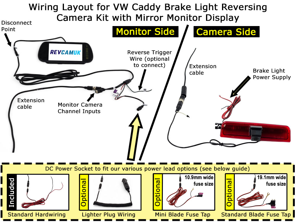 About the VW Caddy brake light reversing camera kit with 7″ mirror monitor
