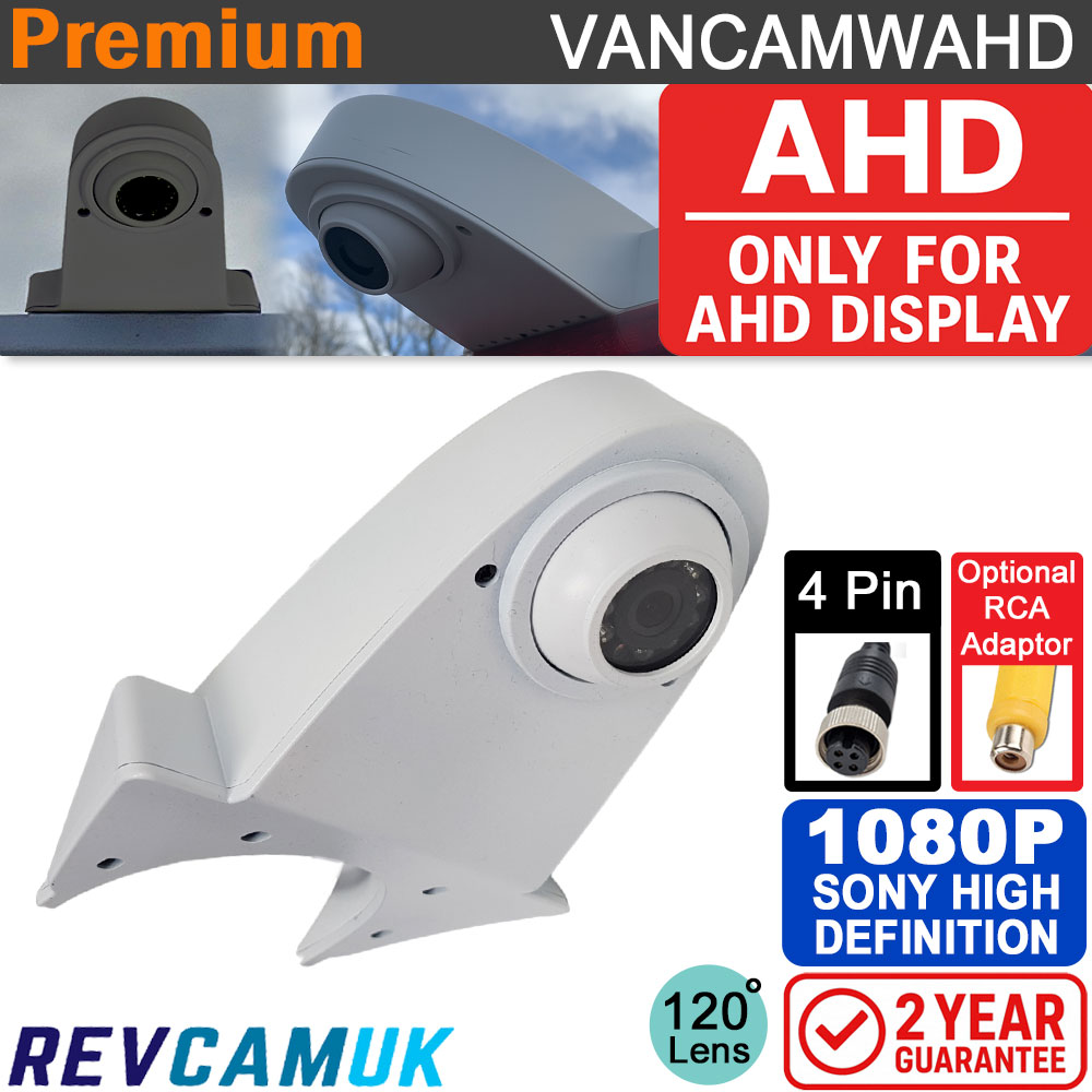 This is our 1080P AHD roof-mount reversing camera designed for vans and motorhomes. It attaches neatly to the rear roof lip and gives a natural-looking view downwards behind the vehicle. The camera uses the Sony IMX307 1080P AHD sensor, giving a clear, detailed picture with very good low-light performance. It includes IR LEDs for night vision, is finished in black, and uses a 4-pin aviation connector. This camera must be used with an AHD-compatible monitor and includes our two-year Reversing Cameras UK guarantee.